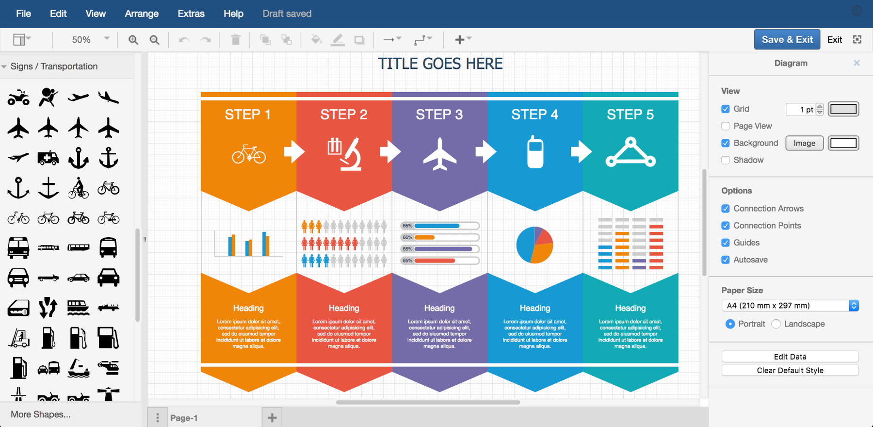 Draw.io is a free Mac program that gives you access to all the basic tools and graphics needed to create diagrams. It allows you to draw flow and network diagrams, business process diagrams (BPM), organization charts, electrical circuits and much more. You can even import your files from Visio, Lucidchart or similar softwares. Export options include XML, HTML, PDF, JPG formats. Intuitive interface with Drag & Drop support, open source, image search and possibility to add your creations to existing files make this tool a valid option.