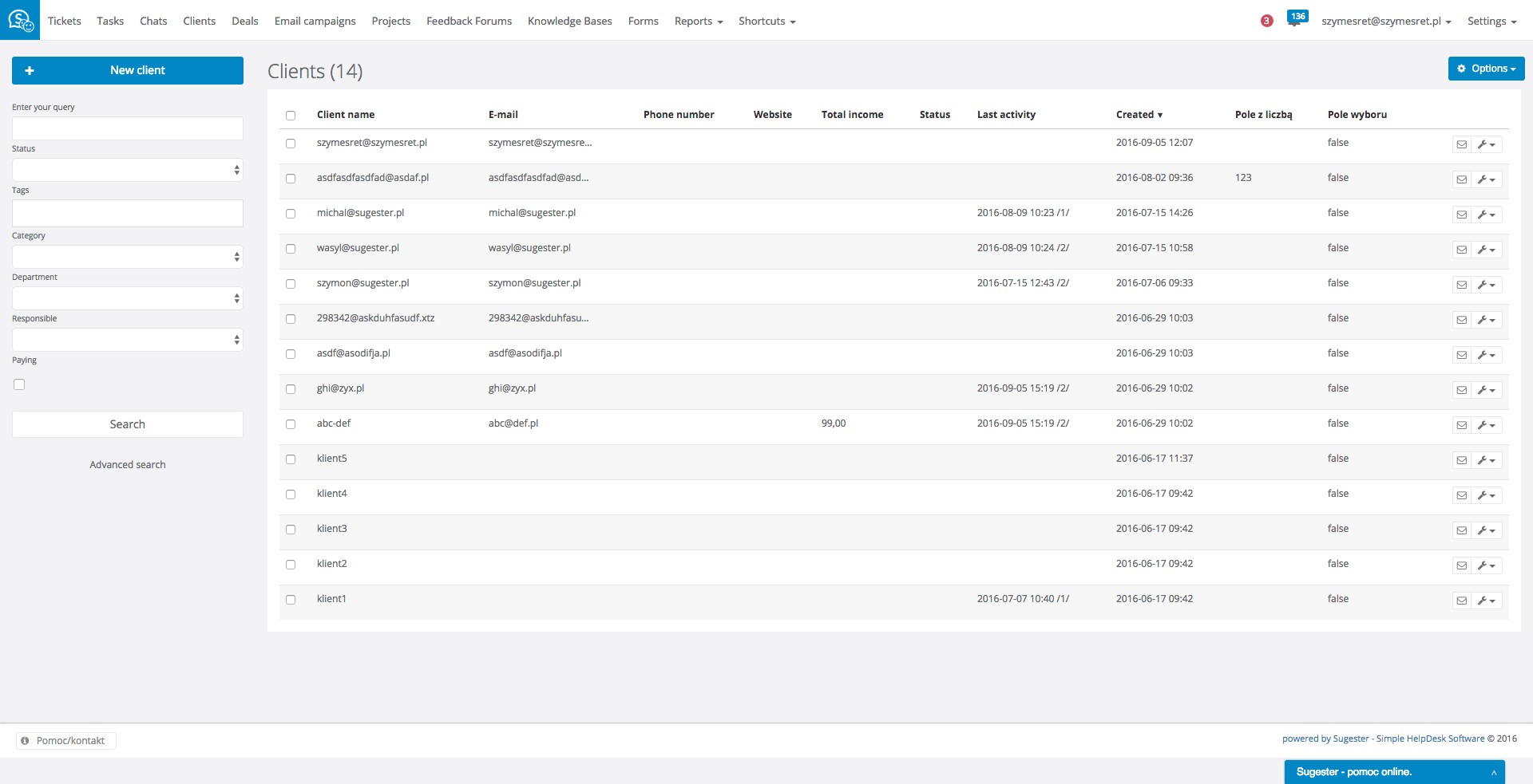 Sugester is a CRM software designed primarily for small and medium enterprises (SMEs) that want to acquire more customers and increase their sales. It makes it possible to facilitate and optimize work and business management, saving time and energy that are normally spent in long and cumbersome processes. It puts at your disposal all the tools necessary to manage and track the activities that interest your company, activating a complete database of your customers’ data. This CRM system will allow you to improve customer relations, keeping those already loyal and acquiring new ones, thus increasing company sales. All this will be possible thanks to a Client Relationship Manager that records your every call, message, email, note, tag and creates really effective cyclic reminders that will always call to your mind to stay in touch with the customers.