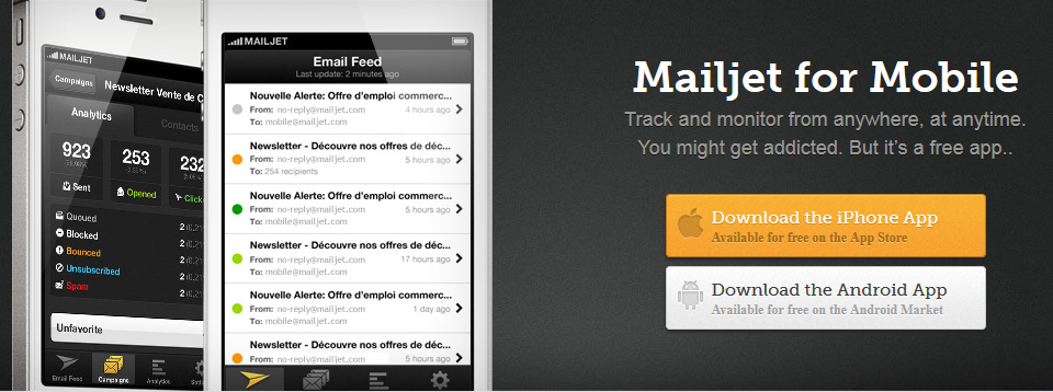 Mailjet most innovative feature is its A/X test that allows you to try up to 10 variants of your newsletter before sending the best one to your contacts. Other email marketing services offer you the A/B test tool, and it’s not a usual feature as you may think, anyway. Along with this killer feature, Mailjet provides an easy to use tool that shows all the results of your current newsletter campaign and compare them with your previous sending to let you analyze all the results and improve your marketing strategies. Another appreciable Mailjet’s feature is a dedicated iOS and Android app that makes easier manage your transactional and bulk emails, offering a real-time monitoring of all your sending flows and good analytics to track your campaigns.