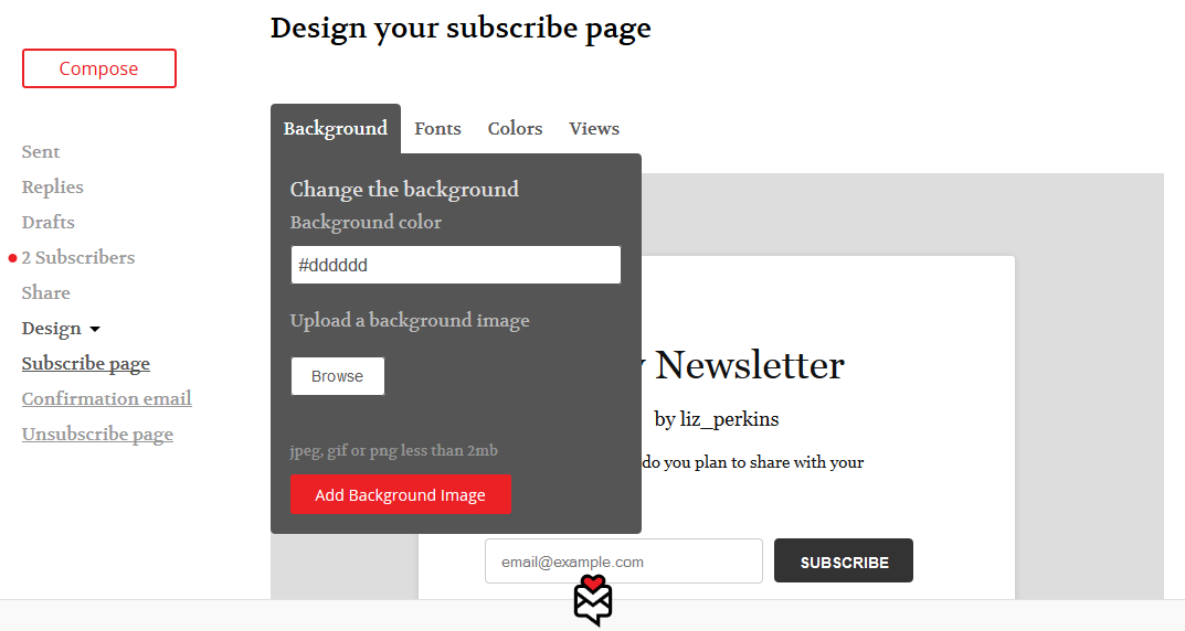 To get people subscribing your emails is very easy too because TinyLetter provides a code to embed and display on your website, a welcome landing page you can customize that describe what kind of newsletter you’ re going to manage and a smart sign up solution through Twitter.