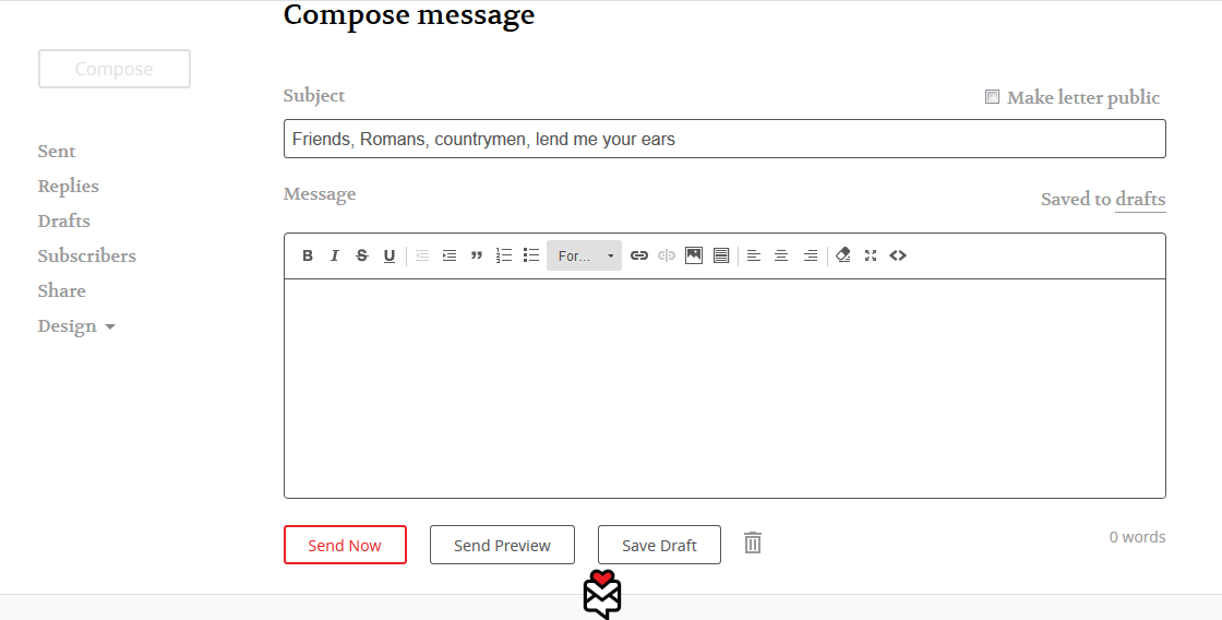 Most of the email marketing service offers you a lot of features, integrations and great functionalities, but TinyLetter it’s designed only to send simply lean yet beautiful emails for free. So you will not find templates, integrations with other apps, analytics and all that kind of specific tools you can usually find in other platforms, but maybe you just want to create in minutes a newsletter for your contacts, giving them a clear and easy way to respond, and in this case, TinyLetter is perfect for you.