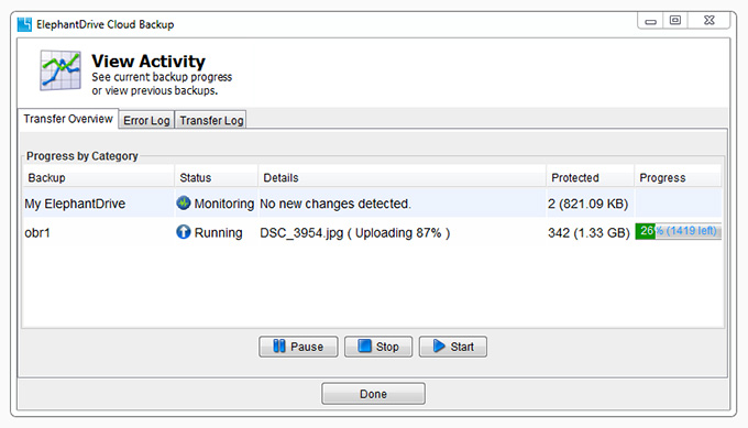 ElephantDrive is a good choice to protect your files in the cloud and keep them available at all times thanks to its backup and file sync tools.