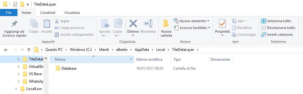 • effettuate il percorso Windows (C:)> Utenti > [Il vostro username] > AppData > Local > TileDataLayer,