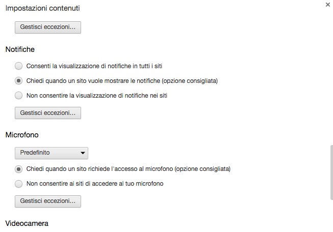 Per impedire a Chrome di riprodurre suoni indesiderati dovete andare cliccare sul menù coi tre puntini, andare in Impostazioni > Mostra Impostazioni Avanzate > Privacy > Impostazione contenuti e poi potete scorrere la finestra fino ad arrivare a Notifiche. Su Gestisci Eccezioni possiamo controllare quali siti hanno il permesso di mostrarci notifiche, anche sonore, e possiamo eliminare il consenso. Un modo ancora più drastico per liberarci dai suoni molesti è quello di selezionare l’opzione Non consentire la visualizzazione di notifiche dai siti. Noterete come i dannati popup, che generalmente partono a volume altissimo, rimarranno silenti nel loro tab.