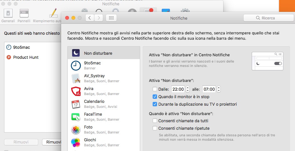 Per Safari, nel caso in cui parta un video possiamo fare click destro sul tab che riproduce l’audio e selezionare l’opzione Disattiva l’audio nel pannello o cliccare direttamente sull’icona dell’audio per metterlo in muto. Per disattivare del tutto i suoni dobbiamo andare in Safari > Preferenze > Notifiche > Preferenze notifiche > Attiva Non disturbare.