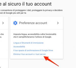 Ne avete piene le scatole dello strapotere di Google sulla vostra vita virtuale? Cancellatevi da tutti i suoi servizi! Andate a questo link, selezionate l’opzione Elimina il tuo account o i tuoi servizi dal riquadro Preferenze account.