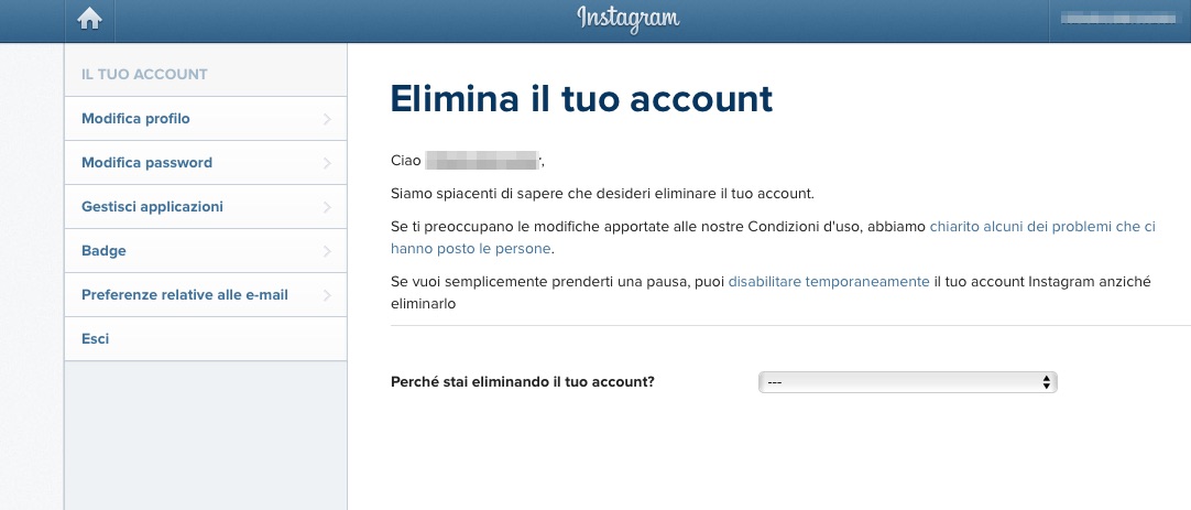 Cancellare definitivamente l’account di Instagram è molto semplice: andate a questo link, effettuate il login con le vostre credenziali e vi ritroverete nella pagina Elimina il tuo account. A questo punto è obbligatorio fornire una motivazione per la quale vogliamo procedere dal menù a tendina, dobbiamo reinserire la password e poi cliccare su Elimina il mio account in modo definitivo.