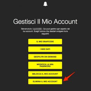 Selezionate Elimina il mio account. Dovrete ora inserire le vostre credenziali e cliccare ancora su Elimina account. Come vi spiega Snapchat, il vostro account sarà solo disattivato per 30 giorni: se non effettuate più alcun login entro quel periodo verrà chiuso definitivamente.