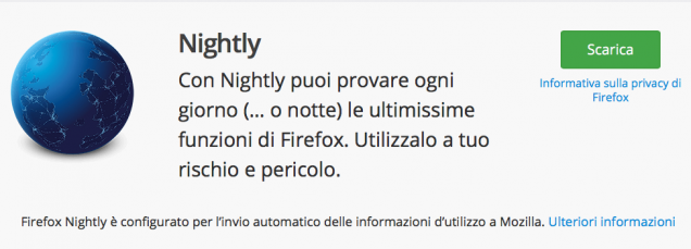 Andate a questa pagina e sorridere per il copy del sito: «Sperimenta una navigazione più spericolata» è una frase divertente che centra in pieno lo scopo delle Nightly build.
