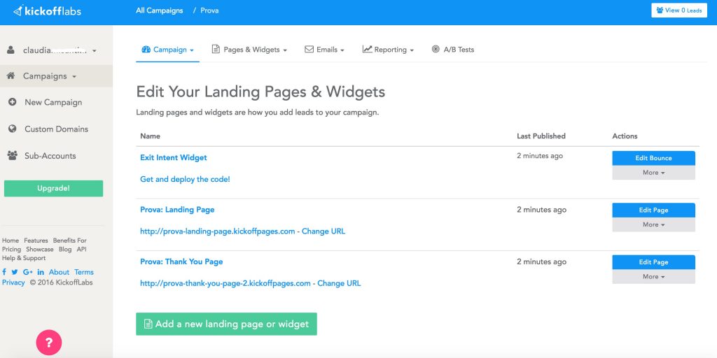 KickoffLabs è una buona soluzione per dare maggior forza alla propria presenza online, si rivolge ad un ampio pubblico ed è alla portata di utilizzatori inesperti. Ricco di funzionalità, KickoffLabs propone il miglior rapporto qualità/prezzo sul mercato. Se siete interessati ad una recensione di KickoffLabs più dettagliata vi invitiamo a leggere il nostro approfondimento in inglese.