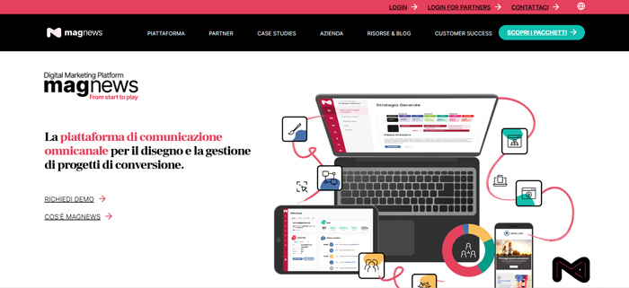 MagNews è una piattaforma di email marketing e marketing automation sviluppata da ContactLab, un’azienda italiana specializzata in soluzioni di customer engagement. È considerata una delle principali piattaforme di email marketing in Italia e offre una vasta gamma di funzionalità per la gestione delle campagne di email marketing, automazione, segmentazione e molto altro ancora.