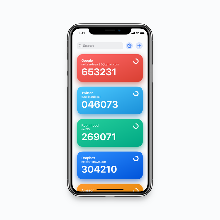 Step Two è una semplice app gratuita per iPhone. Non ci sono account a cui iscriversi prima di poter iniziare a usarlo. Puoi aggiungere i tuoi account online al secondo passaggio con una delle seguenti opzioni: Scansiona il codice QR dall’account per cui vuoi abilitare 2FA. Aggiungi manualmente la chiave segreta dell’account e un paio di altri dettagli dell’account. Non troverai molto in termini di impostazioni dell’app, anche se per essere onesti, non ti serve molto. Step Two ti consente solo di ordinare i tuoi account manualmente e in ordine alfabetico, oltre a eseguire il backup su iCloud. La mancanza di una funzione di importazione può rivelarsi un grave svantaggio se si dispone di molti dati esistenti che è necessario migrare.