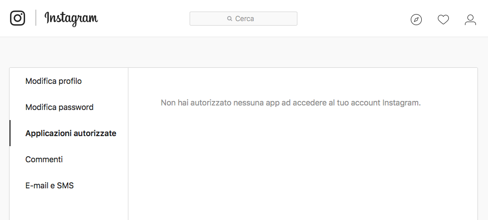 Purtroppo dovete passare per la versione web di Instagram anziché l’app, il che è piuttosto scomodo dal momento che praticamente nessuno utilizza la versione web. Andate sul vostro profilo, cliccate l’icona dell’ingranaggio, scegliete App Autorizzate e revocate i privilegi d’accesso da lì.
