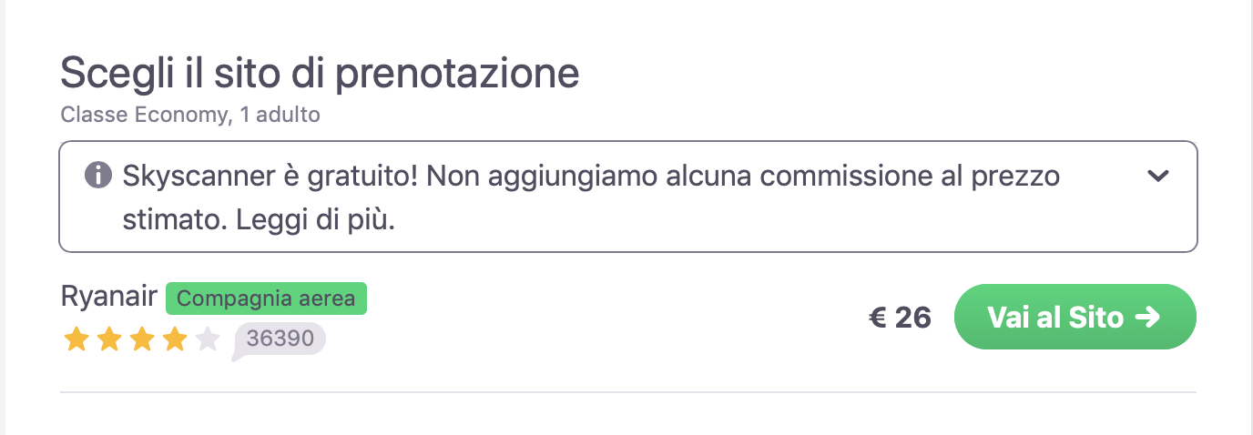 L’ultima domanda sorge spontanea: Skyscanner è a pagamento? Non temere, è tutto GRATUITO quindi vai subito a prenotare il tuo prossimo viaggio. Puoi accedere direttamente dal Sito Web o scaricare l’applicazione mobile compatibile con i dispositivi Android su Google Play e con quelli iOS sull’App Store.