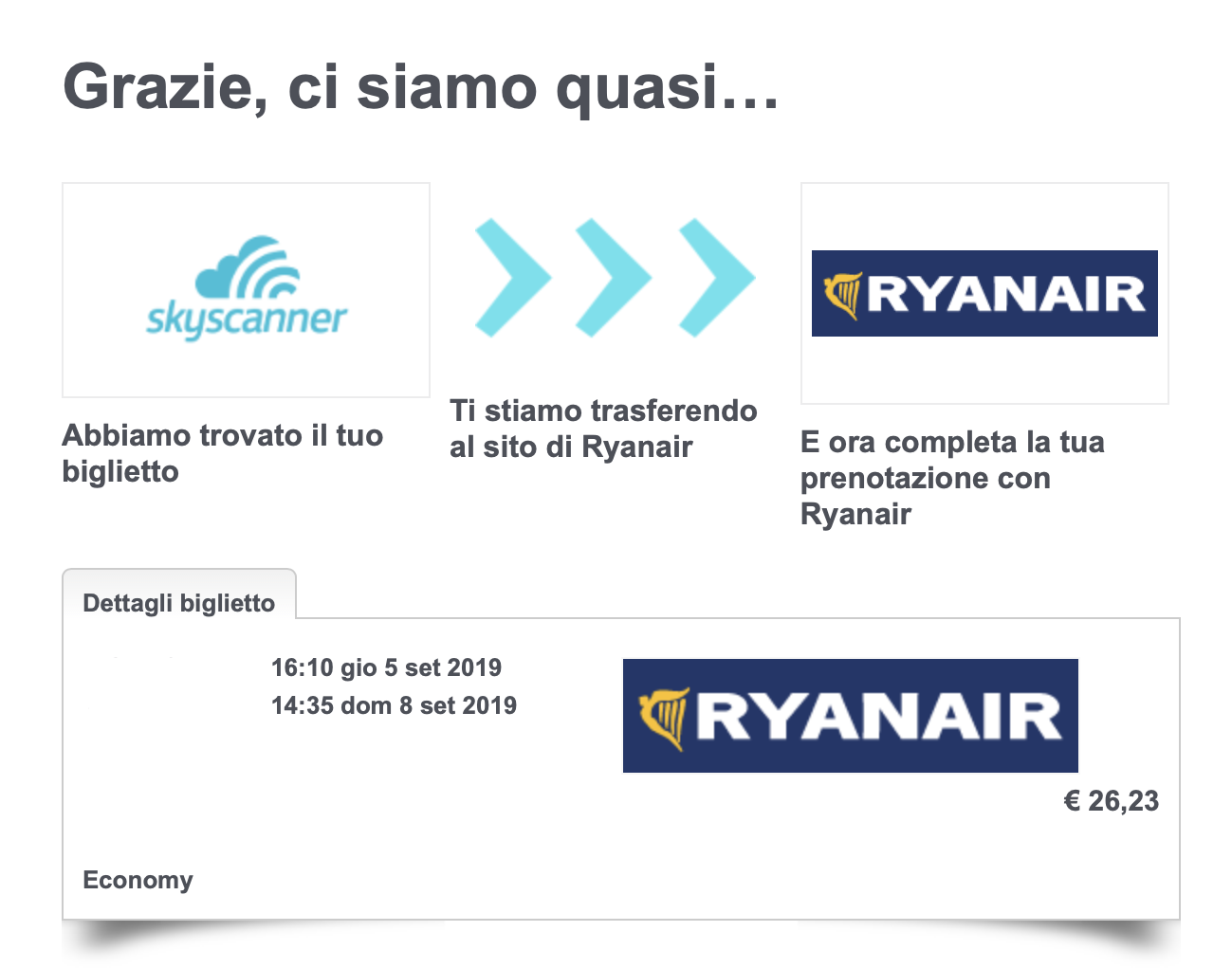 - SI PROSEGUE CON LA PRENOTAZIONE: come ultimo passaggio, bisogna cliccare su “Vai al Sito” per essere reindirizzati direttamente al sito della compagnia aerea o dell’agenzia di viaggio in questione. Si termina prenotando il volo.