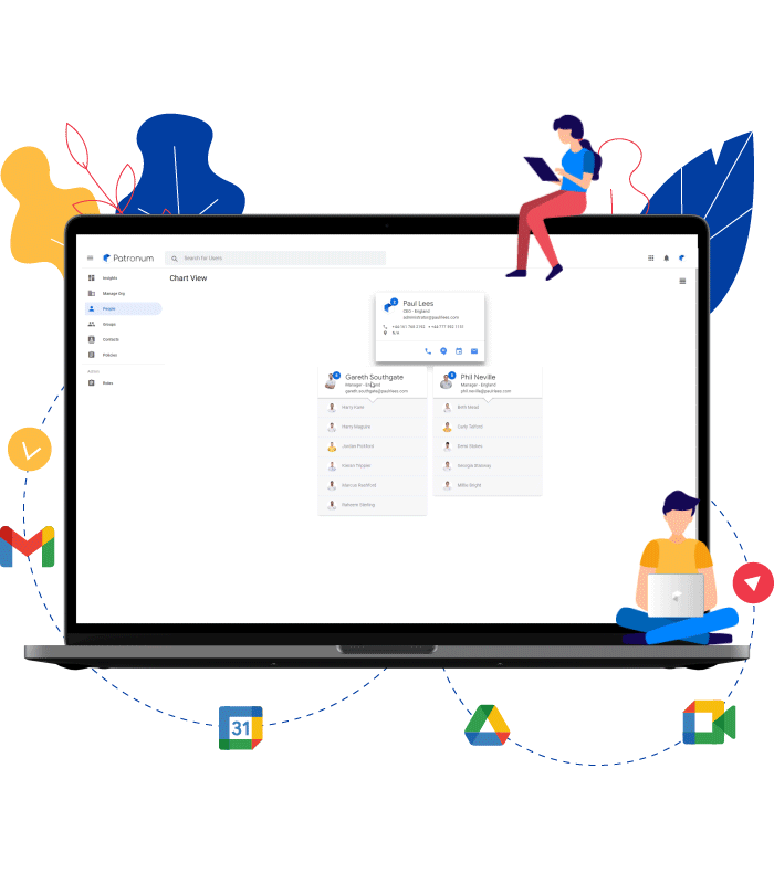 - Organigramma: ricerca e individua gli utenti all’interno della gerarchia di Google Workspace. Vedere chi riferisce a chi, con la funzione di ricerca Patronum People.