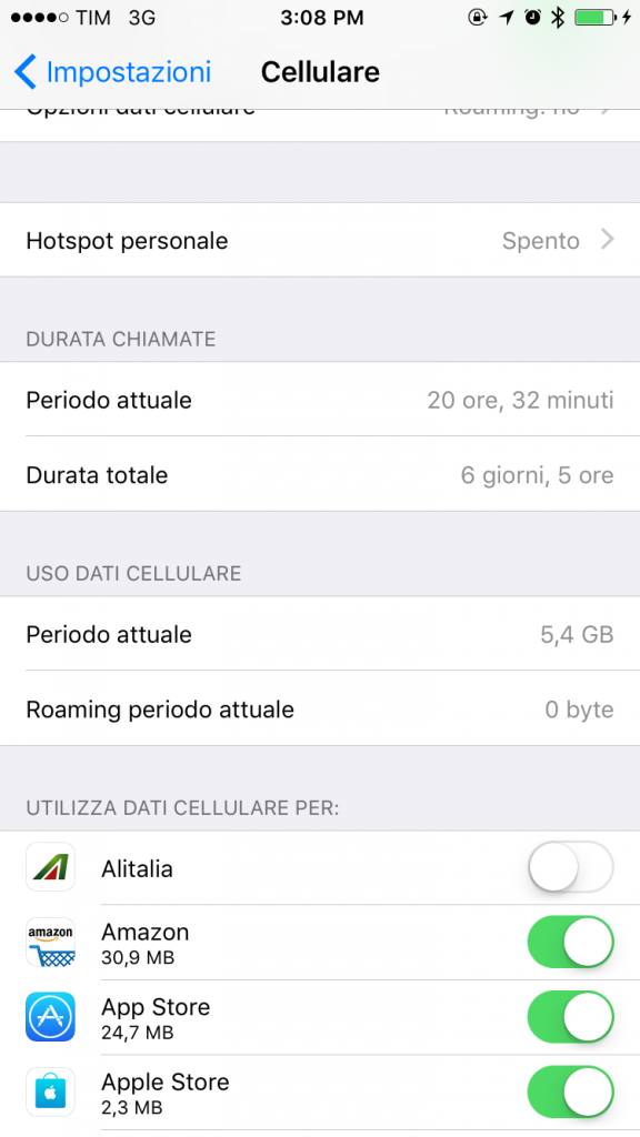 Iniziamo da qui. Dalla schermata principale del vostro iPhone o iPad, toccate Impostazioni, toccate Cellulare. Troverete Uso dati cellulare, ovvero quanto avete consumato del vostro piano tariffario dall’ultima volta che avete azzerato il conteggio. Vedrete inoltre l’elenco delle app che avete installato sul telefono, ordinate alfabeticamente, e la quantità di dati che ciascuna di esse ha consumato. Potrete disabilitare l’uso dei dati cellulari per tutte le app (che è una soluzione estrema, ma piuttosto efficace), oppure solo per quelle che ne consumano troppo, oppure effettuano troppe attività online in background, oppure quelle che ritenete non necessarie.
