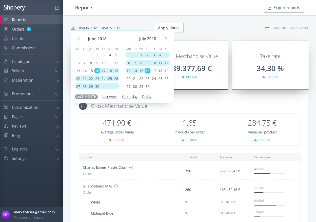 - One platform to configure it all:a backoffice for the marketplace to manage the storefront content, to invite new sellers and to handle all operations. A backoffice for the vendors to manage their product catalogue and to handle their orders